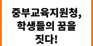 중부교육지원청이 만들어가는 미래 교육 이야기! 학생들의 무한한 가능성을 열어줄 다양한 프로그램과 지원 사업을 소개합니다. 우리 아이들의 꿈을 응원하는 교육 현장의 생생한 목소리를 만나보세요. 교육 비전 엿보기 미래를 여는 혁신 교육, …