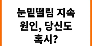 눈밑떨림이 멈추지 않아 불편하신가요? 단순 피로 때문일 수도 있지만, 다른 심각한 원인이 숨어있을 수도 있습니다. 이 글에서 눈밑떨림이 지속되는 다양한 원인을 파헤치고, 해결 방법을 알아보세요. 더 이상 신경 쓰이는 눈밑떨림 …