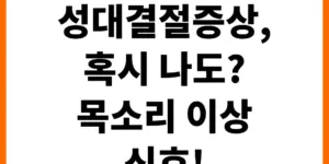 갑자기 목소리가 쉬거나 통증이 느껴지시나요? 성대결절은 누구에게나 찾아올 수 있습니다. 일상생활에서 흔히 겪는 성대결절의 다양한 증상과 원인을 알아보고, 나의 목소리 건강을 지키는 방법을 제시합니다. 더 이상 망설이지 말고 지금 바로 …