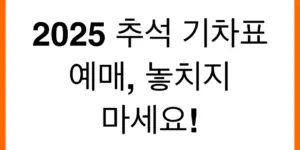 2025년 추석, 명절 기차표 예매는 전쟁입니다. 놓치면 후회할 예매 팁과 결제 방법, 그리고 꿀팁까지 총정리하여 미리 준비하세요. 즐거운 귀성길을 위한 필수 정보만 담았습니다. 2025 추석 기차표 예매 결제 준비! – …