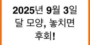 2025년 9월 3일, 특별한 달 모양을 관측할 수 있는 절호의 기회! 놓치면 아쉬울 아름다운 달의 모습을 완벽하게 포착하는 꿀팁을 공개합니다. 관측 시간, 최적의 장소, 준비물까지 모두 담았습니다. 지금 바로 확인하고 …