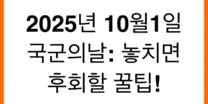 2025년 국군의 날을 맞아 특별한 정보를 찾고 계신가요? 국군의 날 의미와 역사, 기념행사 정보, 그리고 놓치면 아쉬운 꿀팁까지! 알차게 준비했습니다. 다가오는 국군의 날을 더욱 뜻깊게 보내는 방법을 지금 바로 확인하세요! …
