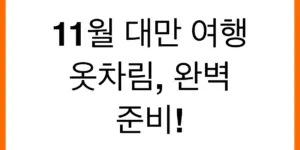 11월 대만 날씨에 딱 맞는 여행 옷차림, 고민 끝! 쾌적하고 스타일리시한 대만 여행을 위한 필수 팁을 공개합니다. 옷 고르는 노하우부터 추천 코디까지, 알찬 정보로 여러분의 대만 여행을 더욱 풍성하게 만들어 …