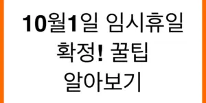 10월 1일 임시휴일 확정! 갑작스런 휴일에 당황하지 않도록 임시휴일 지정 배경, 연휴 정보, 알아두면 유용한 꿀팁까지 쉽고 빠르게 정리했습니다. 알찬 연휴 계획 세우고 행복한 시간 보내세요! 10월 1일 임시휴일? 2024년 …