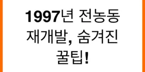 1997년 전농동 재개발, 당시 숨겨진 이야기와 현재에 주는 교훈을 알아봅니다. 과거 자료와 증언을 바탕으로 재개발 과정을 분석하고, 부동산 투자 관점에서 시사점을 제시합니다. 지금은 상상하기 힘든 개발 비화와 함께, 성공적인 재개발의 …
