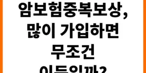 암보험, 여러 개 가입하면 진단비를 모두 받을 수 있을까요? 암보험중복보상의 진실과 오해, 그리고 현명하게 가입하는 팁까지! 제대로 알고 준비해야 손해 보지 않습니다. ## 암보험 중복보상이란? ‘보험’에 대해 이야기할 때 가장 …