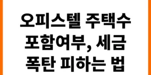 오피스텔, 주거용과 업무용 사이에서 헷갈리시죠? 오피스텔이 주택 수에 포함되는 기준과 그에 따른 세금 문제, 절세 꿀팁까지 명쾌하게 정리해 드립니다. 이 글 하나로 모든 궁금증을 해결하세요. 오피스텔, 주택일까 아닐까? 오피스텔 투자를 …