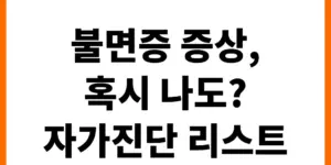 밤에 잠 못 이루는 당신, 혹시 불면증은 아닐까요? 잠들기 어렵거나 자주 깨는 등 다양한 불면증 증상들을 알아보고, 간단한 자가진단을 통해 자신의 수면 상태를 점검해보세요. 건강한 잠을 되찾는 첫걸음입니다. 1. 잠들기 …