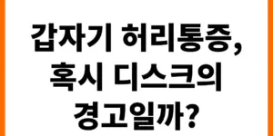 어느 날 갑자기 찾아온 극심한 허리 통증! 단순 근육통으로 넘기기엔 찝찝하신가요? 갑작스런 허리 통증의 다양한 원인과 즉시 실천할 수 있는 응급 대처법, 재발을 막는 예방법까지 모두 알려드립니다. 갑작스런 허리통증, 원인은? …