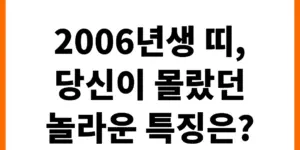 2000년에 태어난 밀레니엄 베이비, 00년생! 올해 만 나이는 몇 살이고 정확한 띠는 무엇일까요? 많은 사람이 헷갈리는 2000년생의 띠(용띠)와 나이, 성격 특징까지 한 번에 정리해 드립니다. 00년생, 2024년 만 나이 2000년, …